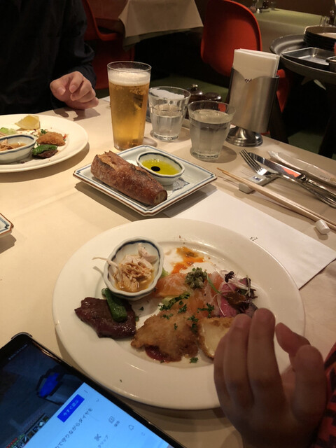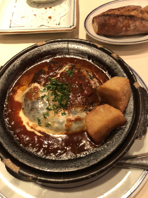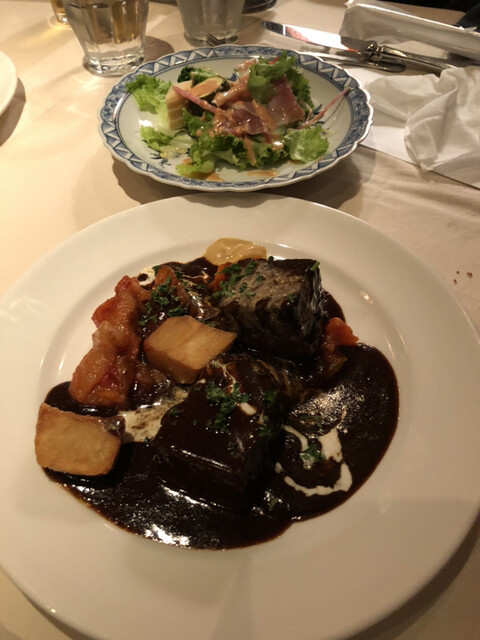 私、ハンバーグステーキ@3850 彼は、ポークカツレツ@4180+ビール チビは、ビーフシチュー@4950