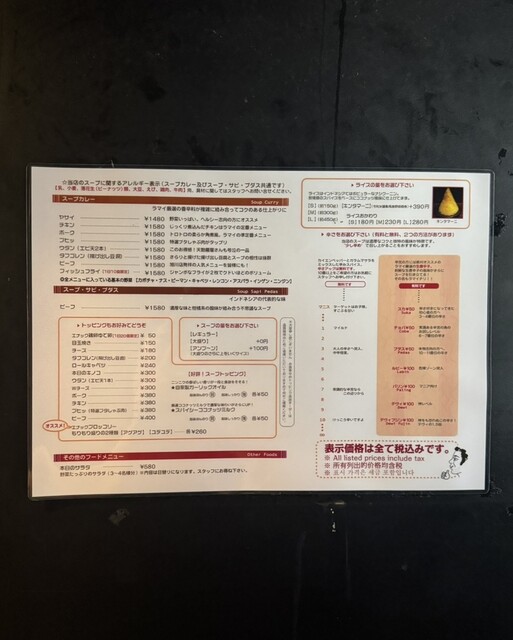 この7月からスープカレーのお値段が