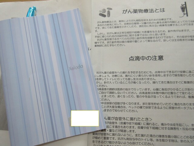 抗がん剤はオキサリプラチンという点滴(1日目三時間)とゼローダという飲み薬の投薬を二週間して、一週間休薬でトータル三週間となり(これで1クール)、それを四回繰り返しました