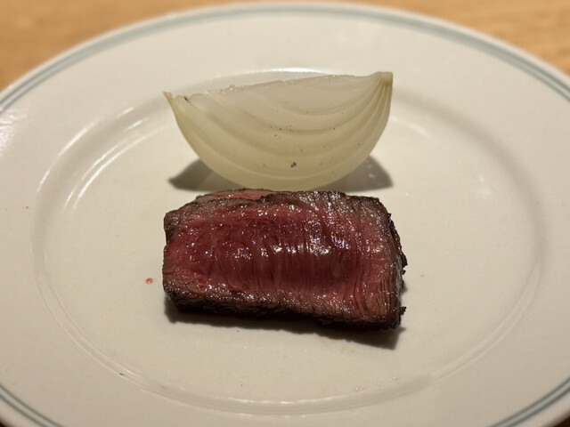 ・近江牛イチボの炭火焼き、新玉ねぎ