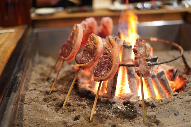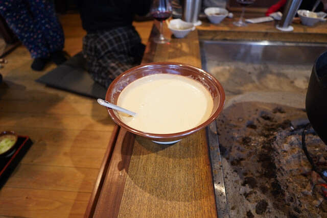 カリッと表面を囲炉裏で焼いてもらって、楽しみます。