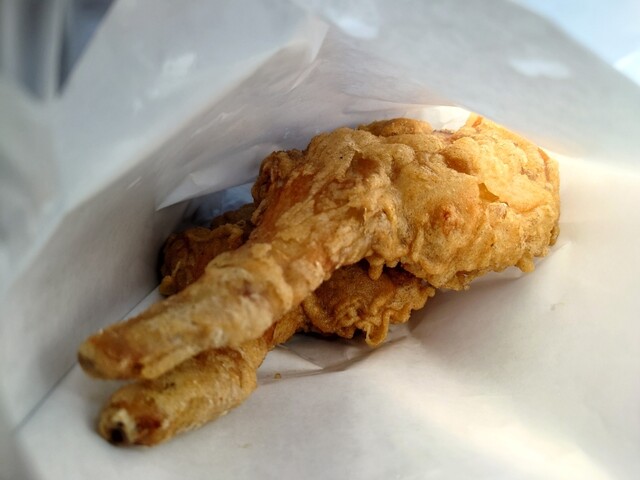 令和3年2月27日土曜日、こないだ宮内さんのから揚げ食べたとき、親父さんがとりの足の方が好きなんだよなって呟くから、お昼のおかずにとりの足のから揚げ注文しました。