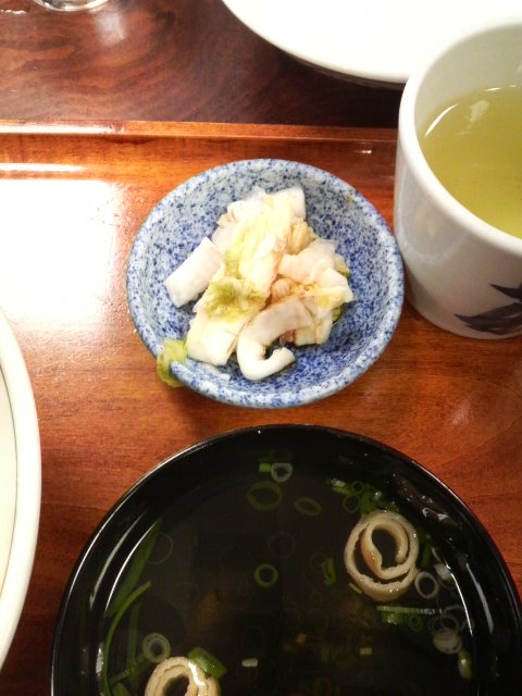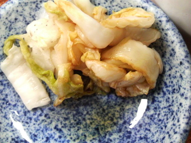 白菜の漬物、適量のしょうゆがすでにかかってました。