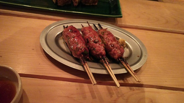 青ネギと長ネギも甘くて鴨と合いますね~。肉は胸肉の他につくね、レバー、ハツを用意してくれました。いや本当にどれも旨味が強く濃いです。