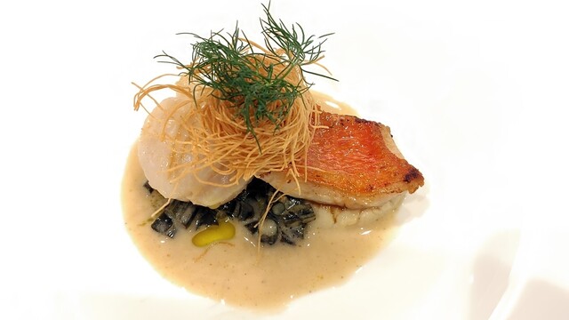 ・金目鯛と帆立貝柱のポワレ わらびのブールブランソース