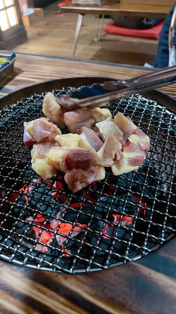 店主さんが焼いてくれる地鶏の炭火焼きも本当に美味しくて、マジで山空じゃないと食べられない味です。