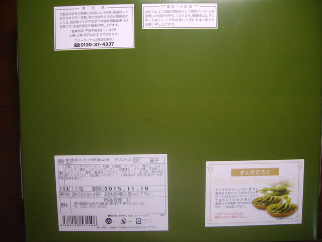 仙台みやげの「ずんだたると」頂きました。 (2015/08/22)