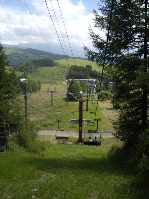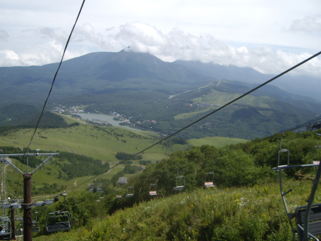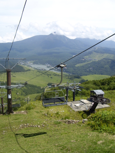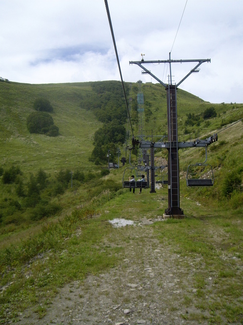 車山高原のリフト。2本を乗り継いで山頂へ。