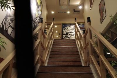 新撰組の舞台でよく出てくる、急な階段を模した階段を上り