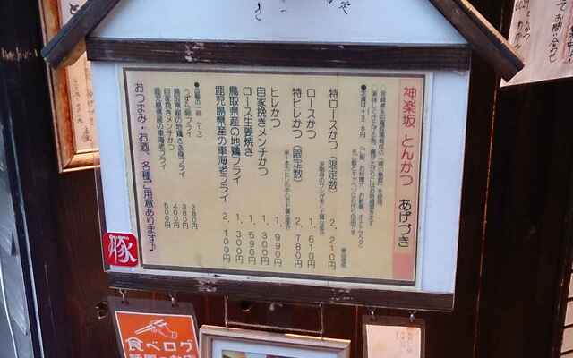 入口の前にはメニュー表があり、場所柄他の名店と言われるとんかつ店よりも