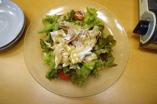 まずは冷しゃぶや、一緒に添えられた野菜を小皿に取り分けてから頂くと