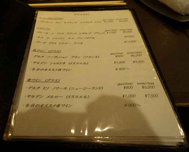 ボトルワンメニュー。※辛口ワインで有名なシャブリもあり。