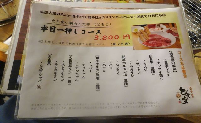 たまに行くならこんな店は、仙台市のど真ん中であの高級牛「仙台牛」をコスパ良く立ち食い形式で楽しめる、「立ち食い焼肉 と文字」です。