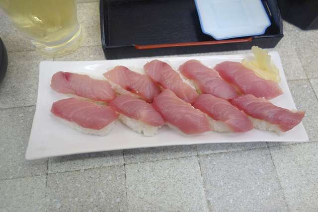 その後はブリの寿司10円を10貫注文。10円のブリの寿司は身は分厚く、シャリも甘めで中々の美味しさ。10円にしては大満足な美味しさです。