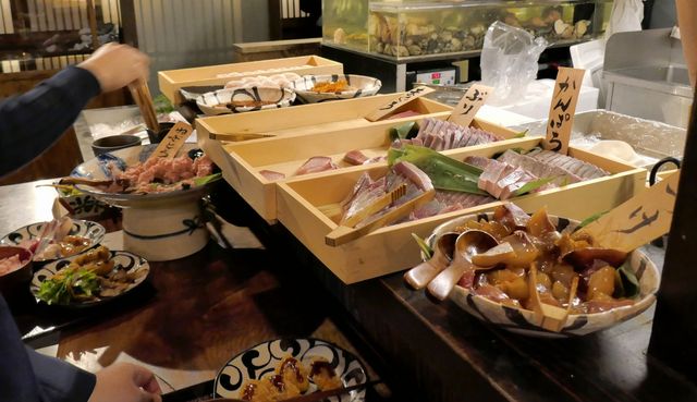 刺し身やお寿司を楽しんだあとは、色々とおかずをとって刺し身コーナーに差し掛かると、魚の量が増えていてびっくり!