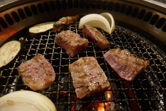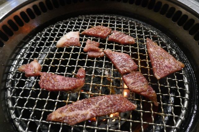 矢継ぎ早に「インサイドスカート」を金網の上へと投下!「インサイドスカート」も、先ほど食べた「ミスジ」同様に両面に火を通し、頃合いを見て食べてみると、柔らかな食感に加えて、スッキリとした舌触りと濃厚なウマさが感じられてこちらもウマウマでした!