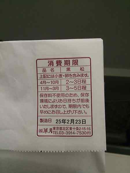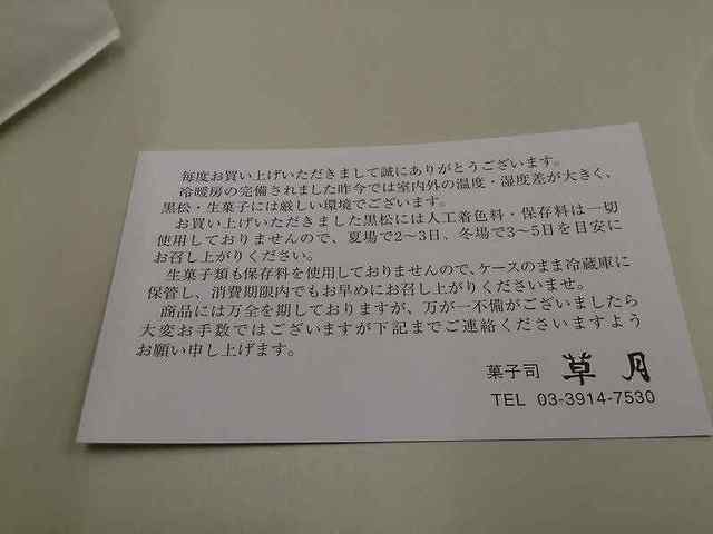 お店の名前は黒松本舗草月であること、お店の住所は丁目等を省いて、東十条駅下南とだけ書かれており