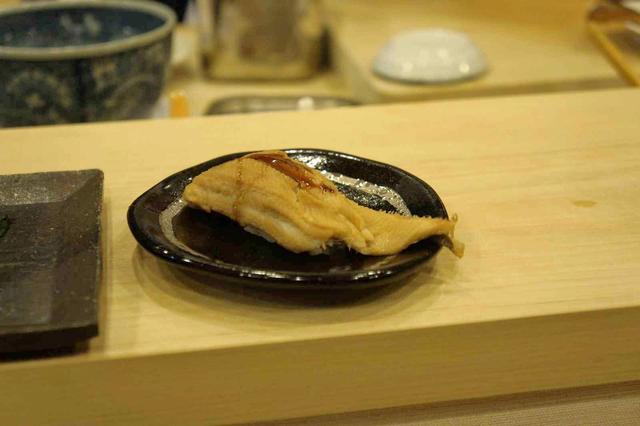 大変大きな穴子の身が乗った穴子寿司は、口の中でトロけるような柔らかさと
