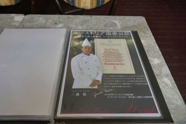 最後にお店オーナーで、菓子職人の親方資格を持つ浦祐一氏の写真と、在りし日の修行風景を思わせる写真でメニュー表の内容は以上です。