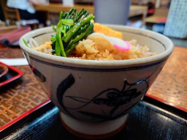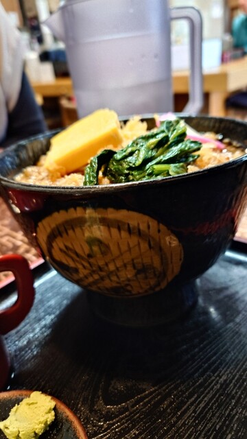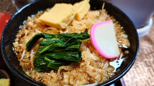 卵焼き、ほうれん草、揚げ玉のバランスが絶妙です。男性訪問客のほとんどの方が冷やしだましそばを注文していました。