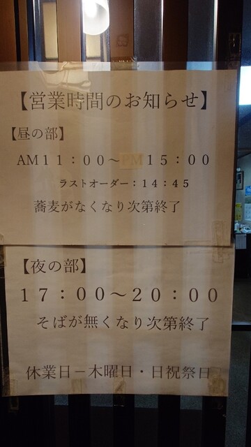昔ながらのお蕎麦屋さんです。夕方の17時開店と同時に訪問しました。10分後にはかなりのお客さんが訪問しました。