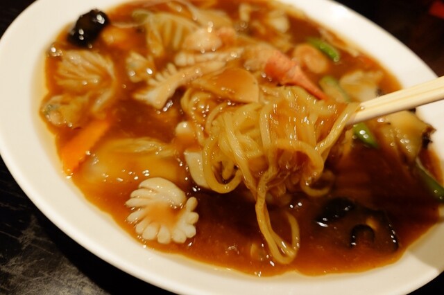 海鮮あんかけの麺は柔らかいけどしっかり焼いています。麺だけでも旨いです。