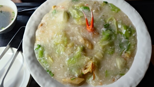 五目湯麺を注文したのですが、前日の五目焼きそばの餡のスープが抜群に素晴らしく、スープの確認をするために五目湯麺を注文しました。やはり美味しい!旨味と甘味が複雑に織り混ぜって抜群に美味しいです!