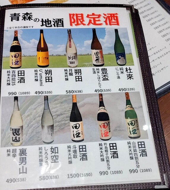 何から頂こうかとメニューを見ていたら、プレミアム飲み放題がある、それも青森県の地酒まで飲み放題とはいいねぇ!