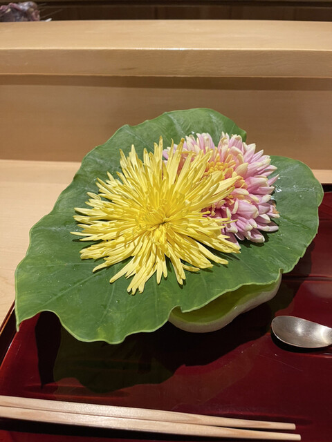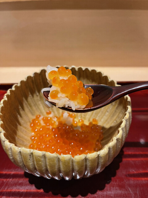 重陽の節句を意識し、菊の器で提供されるのは、いくら丼。