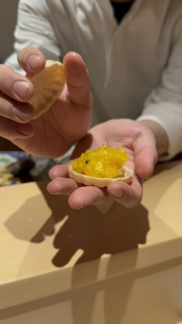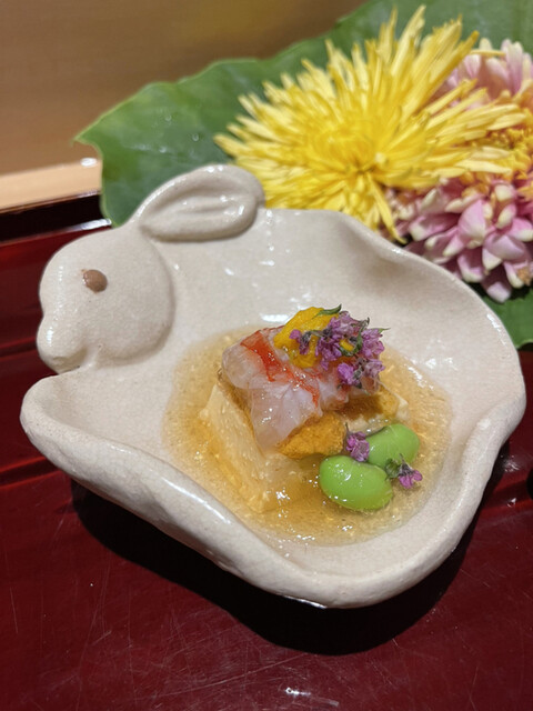 その中には、卵豆腐 車海老 雲丹 にこごり。
