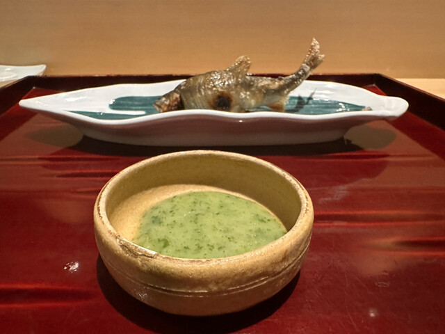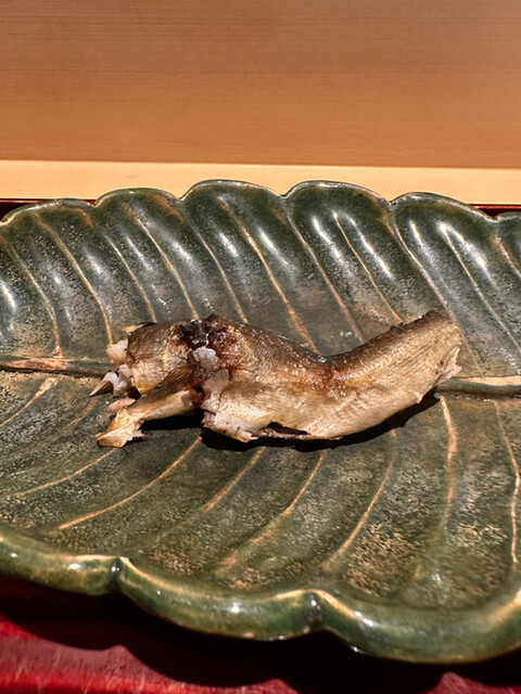 四万十川の鮎は、骨が柔らかくなるまで焼くとパサついてしまうので、そこまで焼かず、骨を後から抜く。