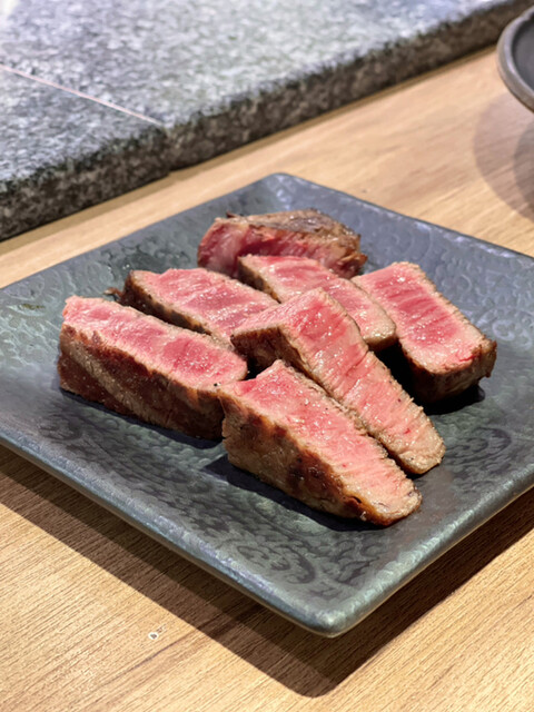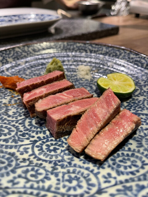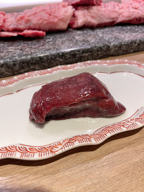 生肉系の前菜の段階だと、全然余裕じゃない?って思うんだけど、焼肉始まると一気にお腹膨れてくるのが分かっている私は、1切れだけ…。