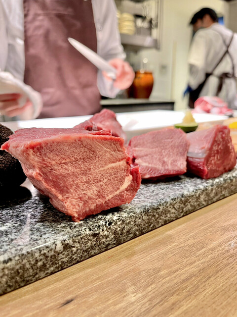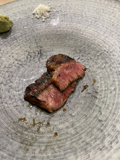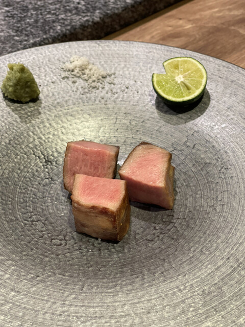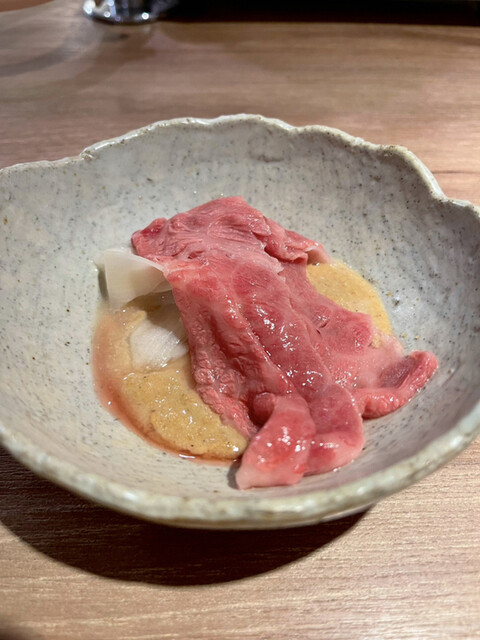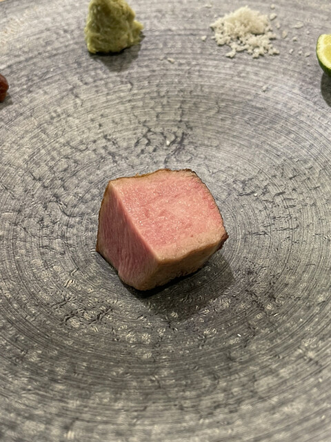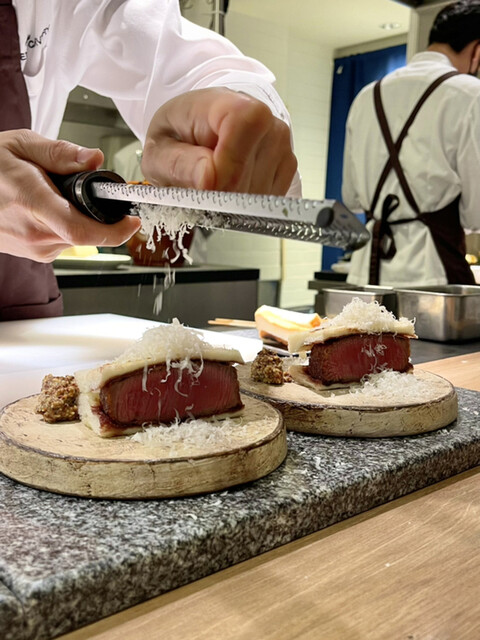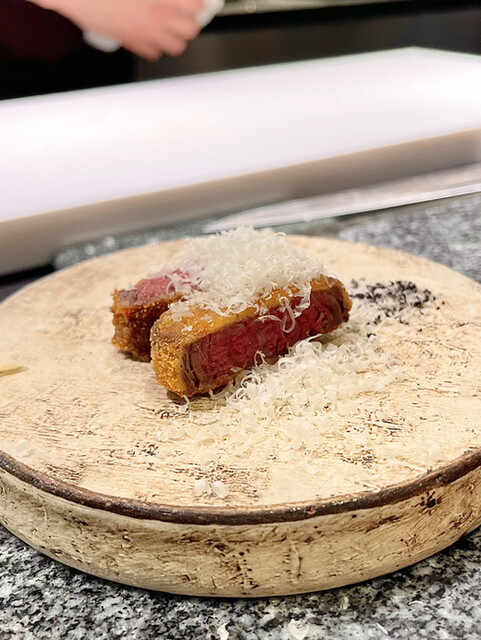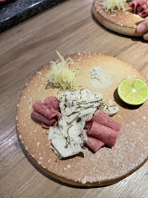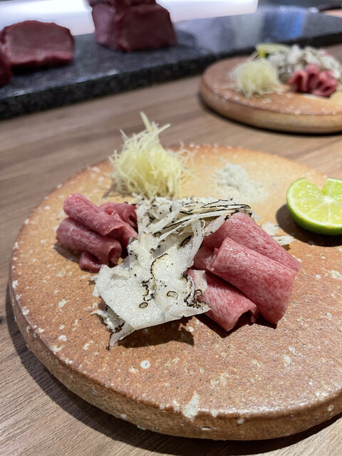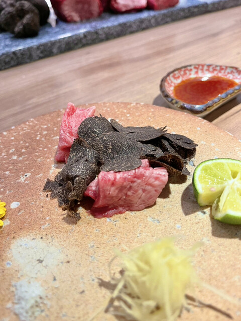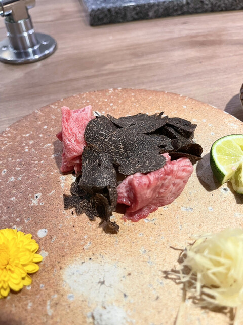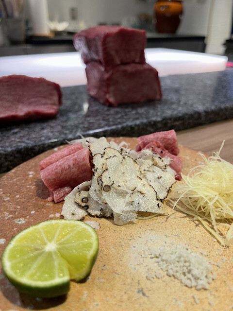 4品目:和牛タン元のお刺身 フランス産オータムトリュフ添え。