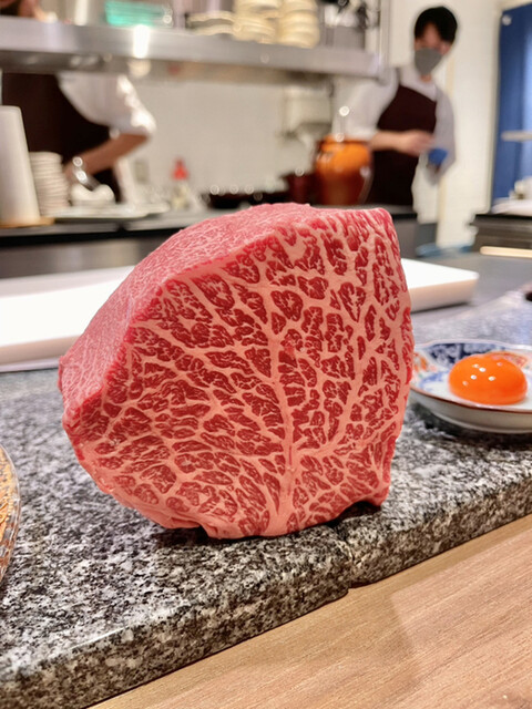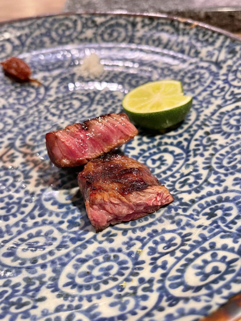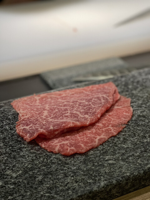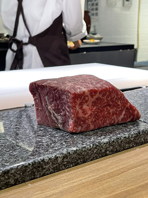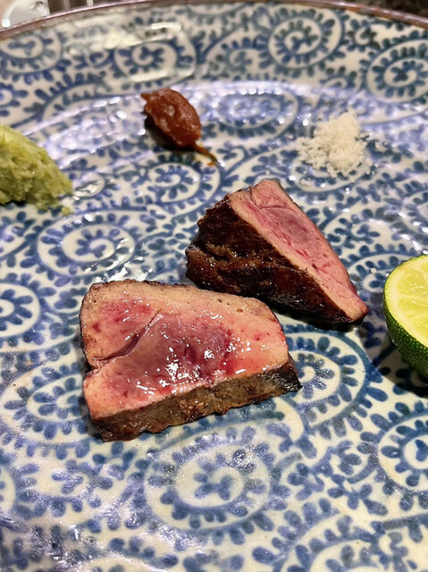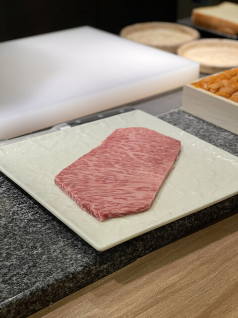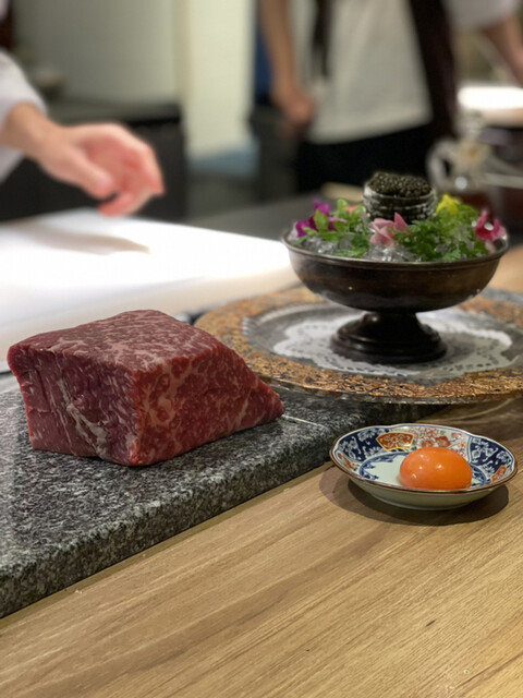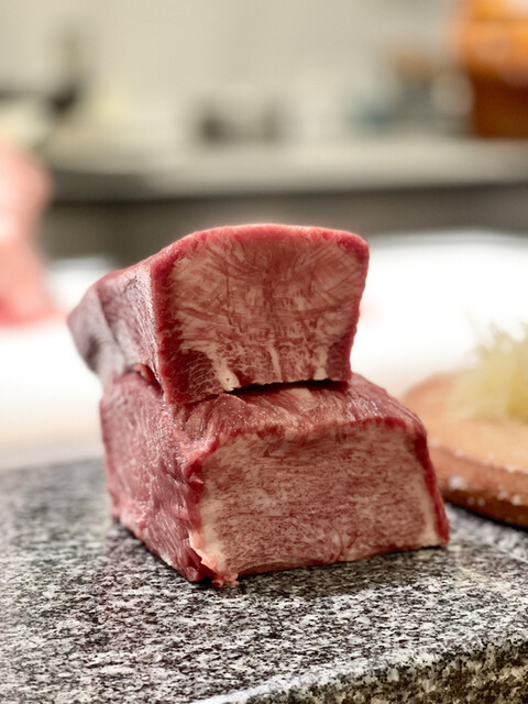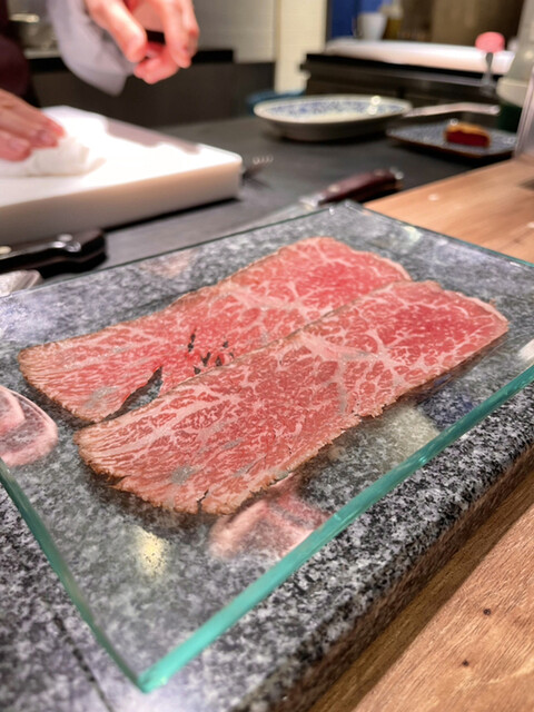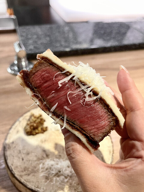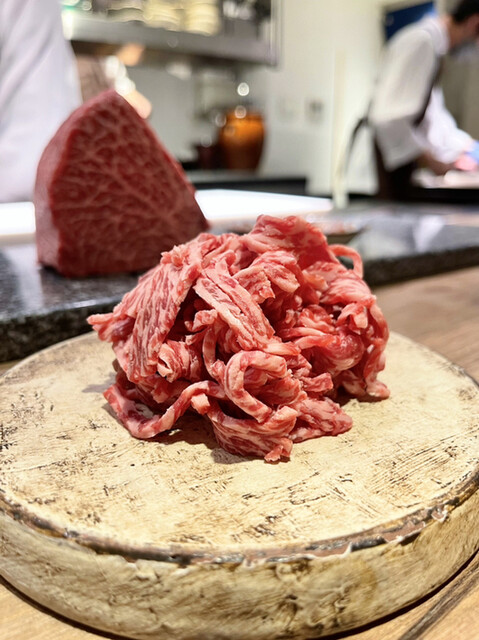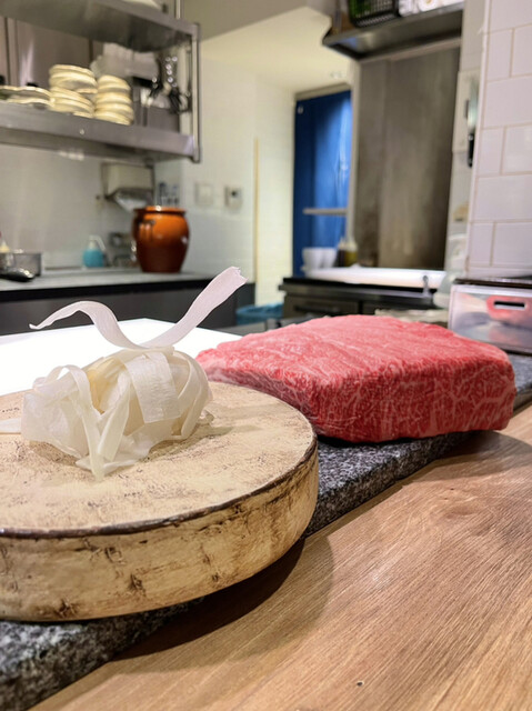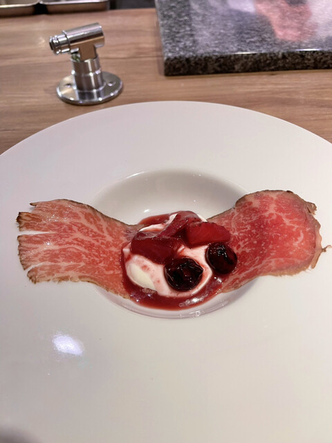 4品目:和牛タン元のお刺身 フランス産オータムトリュフ添え。