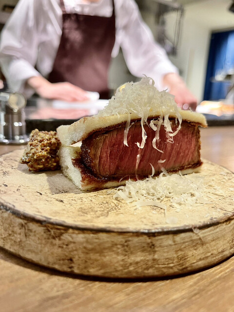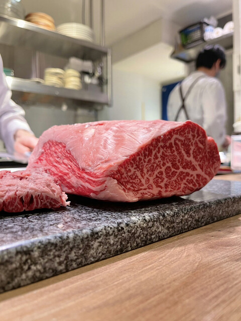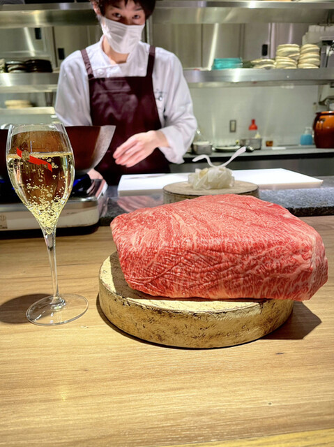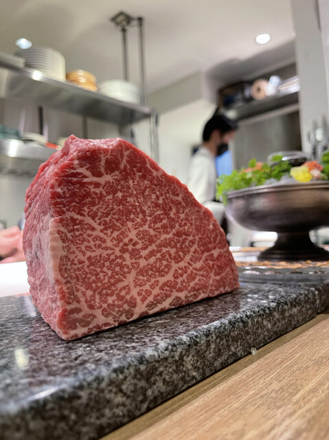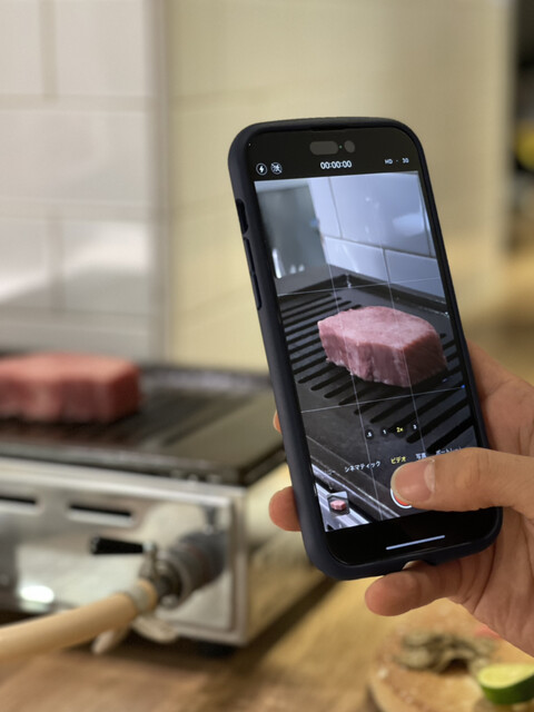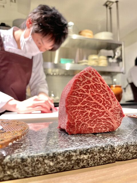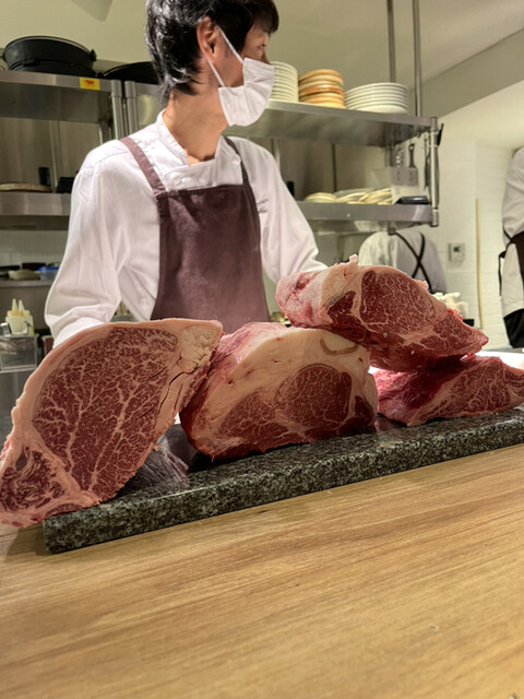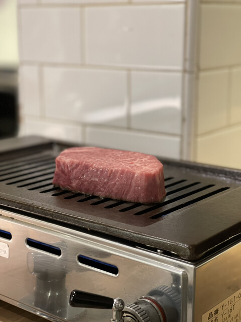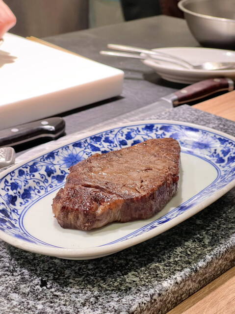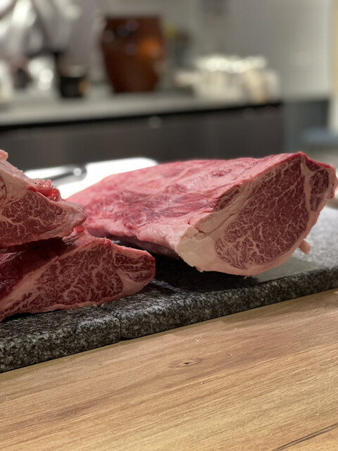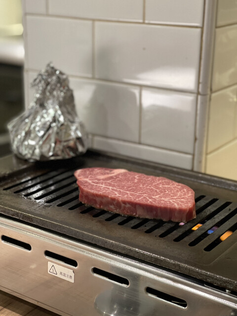 めちゃくちゃ分厚いシャトーブリアンを豪快に焼いていく。