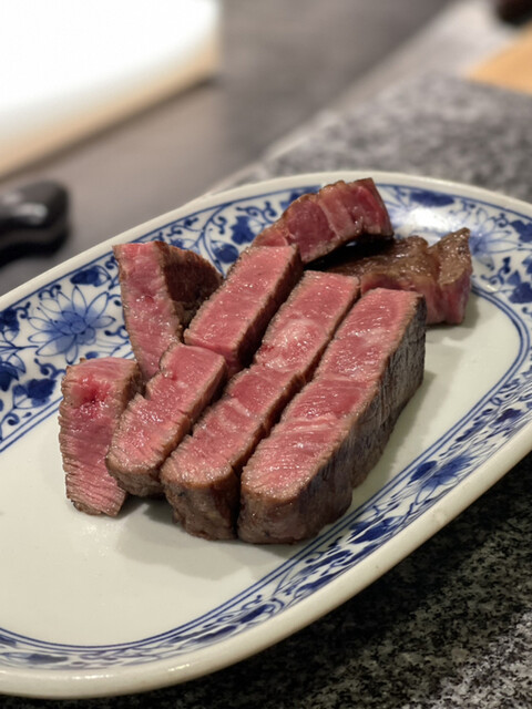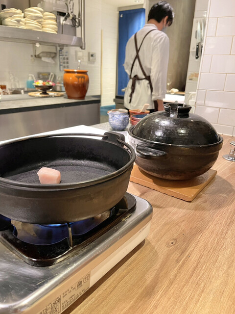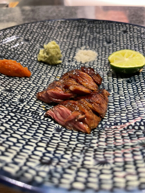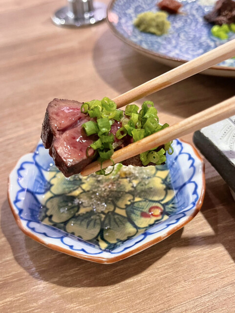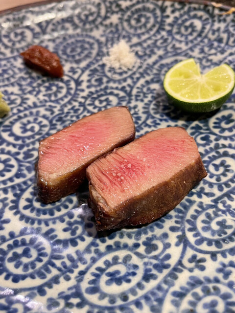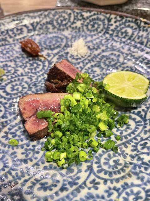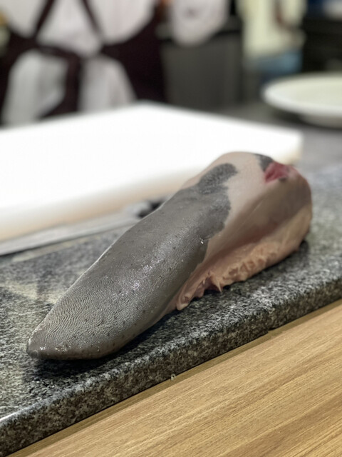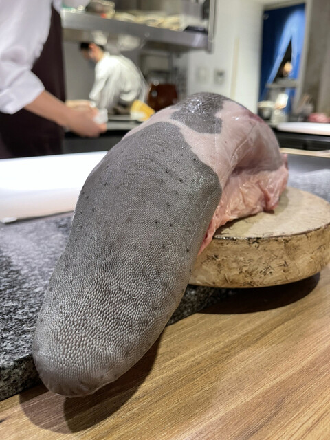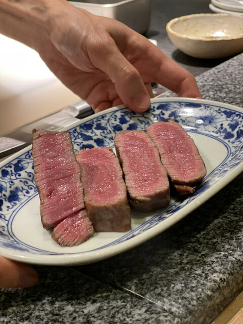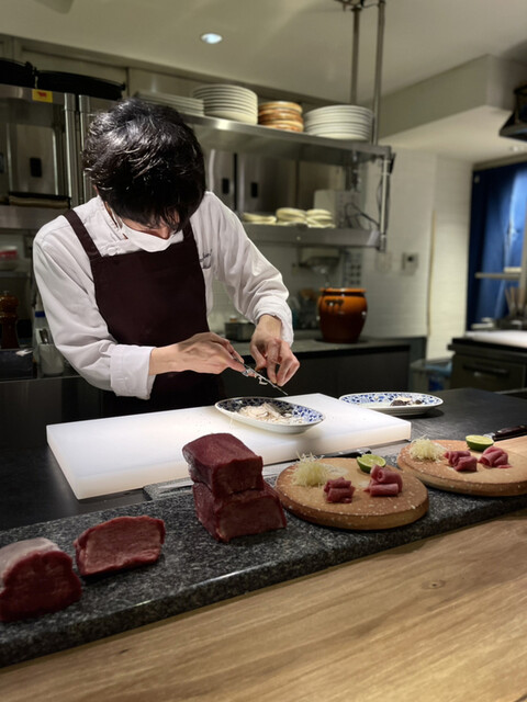 弱気の私に、タレとか薬味と楽しめるようにと、1切れを更にカットしれくれる優しき明石シェフ。