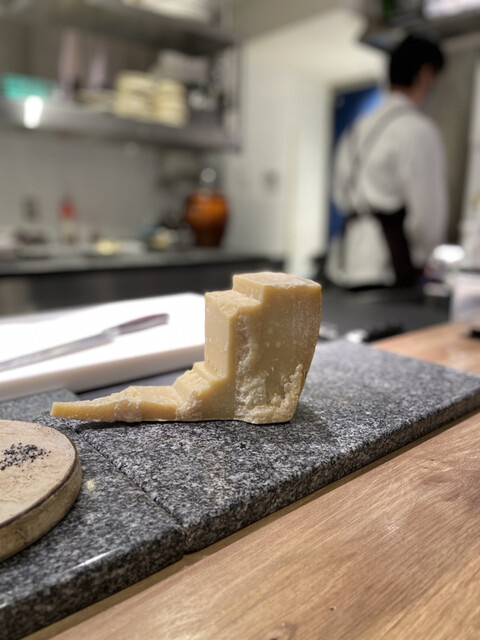 そこにイタリアのパルミジャーノチーズをすりおろしていく。
