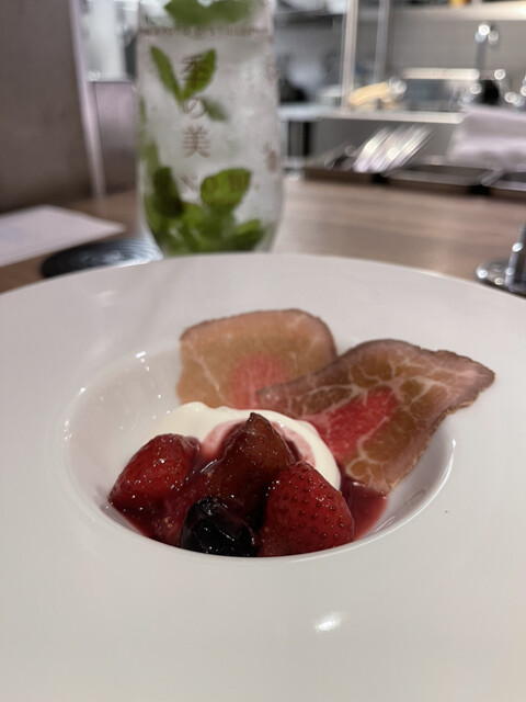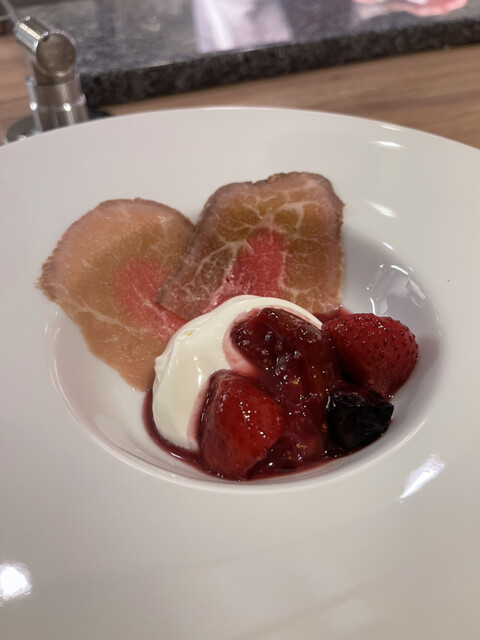 生ハムの上品な塩味と熟成臭、そこにフルーツとマスカルポーネの相性抜群!