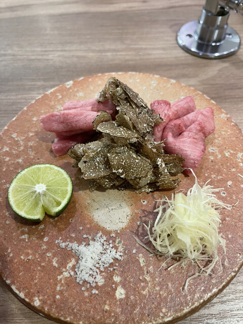 トリュフがどっさり添えてあるから、タンと一緒に食べるだけでなく、トリュフを刺身のようにつまみにして食べるという贅沢感。