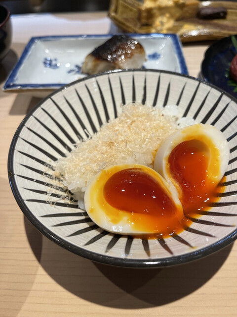 この出汁炊きごはんに糸鰹節と、半熟煮玉子!!