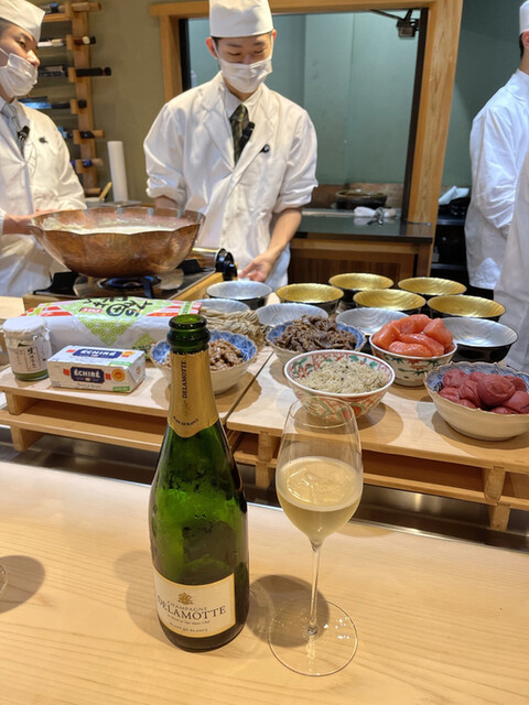 次のキャビアや鱧に合わせよう!と、何やらすごいワインを取り出した。