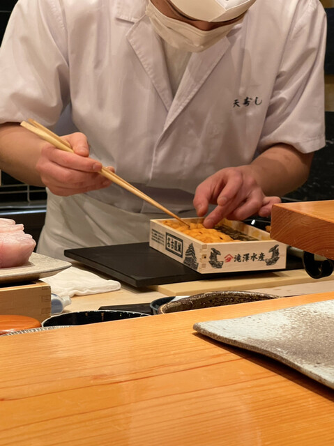雲丹は軍艦を作る際、海苔を斜めにして留めるのが印象的。