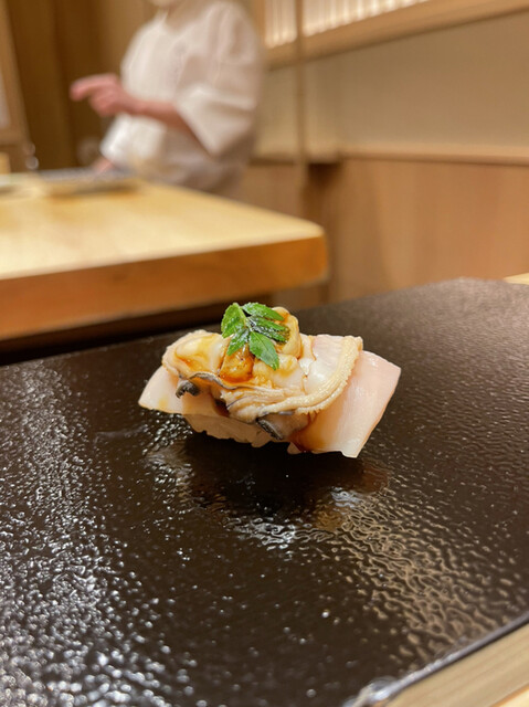 つまみで蒸し鮑は出ていたけど、焼きだとまた食感違くて面白い◎