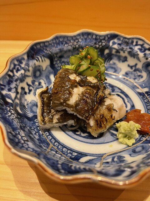 ふぐの白子はしっかり焦げ目がついて、香ばしさと白子のまろやかさが絶妙。
