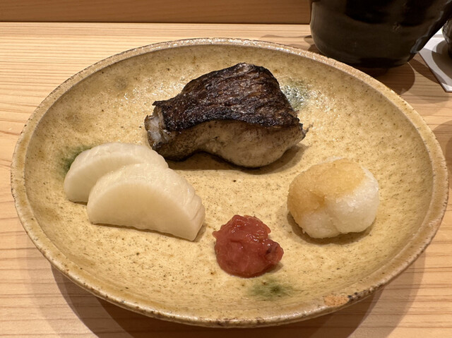 酸っぱーい梅干しを付けて食べると、グン!とノドグロの甘さが引き立つ⤴️