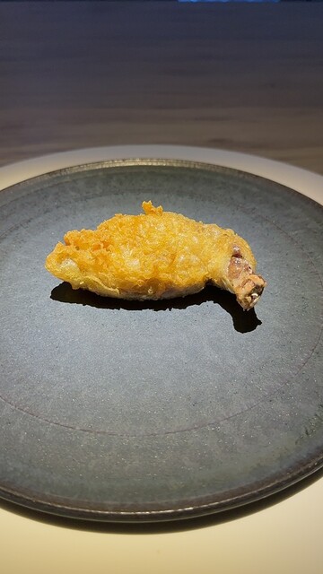 鳩のモモ肉?を肉汁逃さないように5分だけ揚げる。