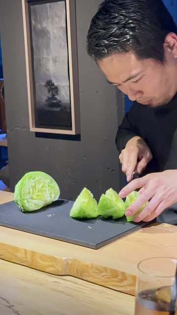こちらもキャベツを一枚一枚剥がして、間に牛の背脂を挟む。
