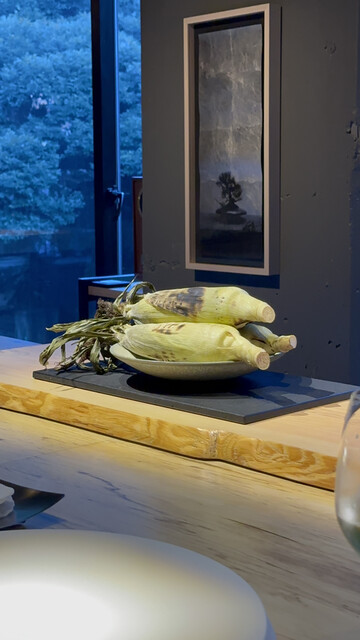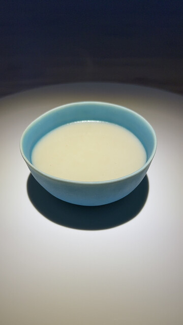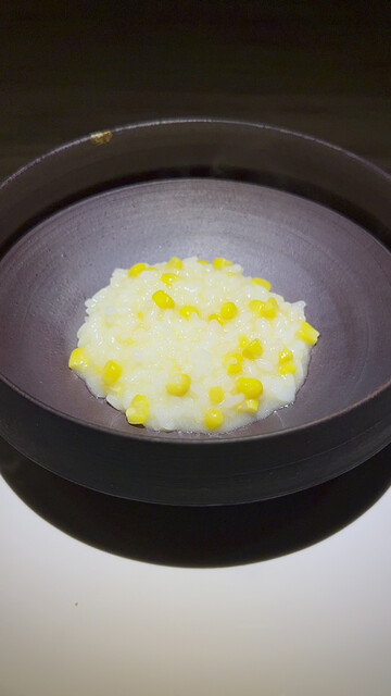 まずは1皿目 とうもろこしのスープ 塩と水だけ。