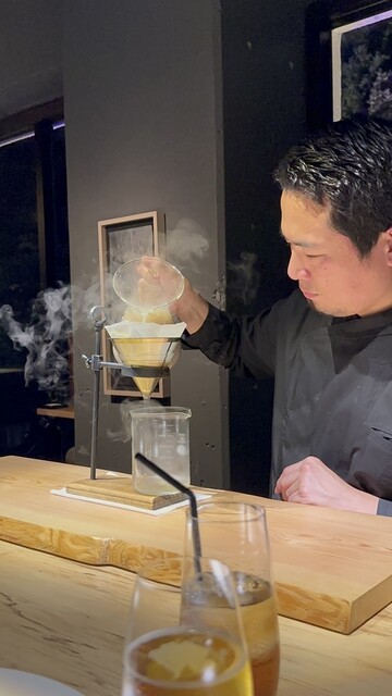 芯ごと粉砕する事で、身の甘さだけでなく、芯の土臭さや奥深さを出す。