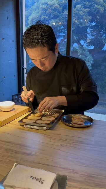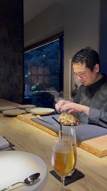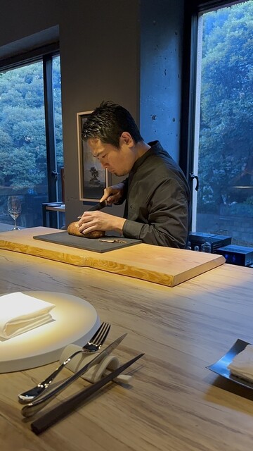 河島シェフは、フォアグラだけ食べた方が美味しいと思うが、常連さんの意見でパン付きになったとの事なので、まずは、パン有りで。当然美味い。